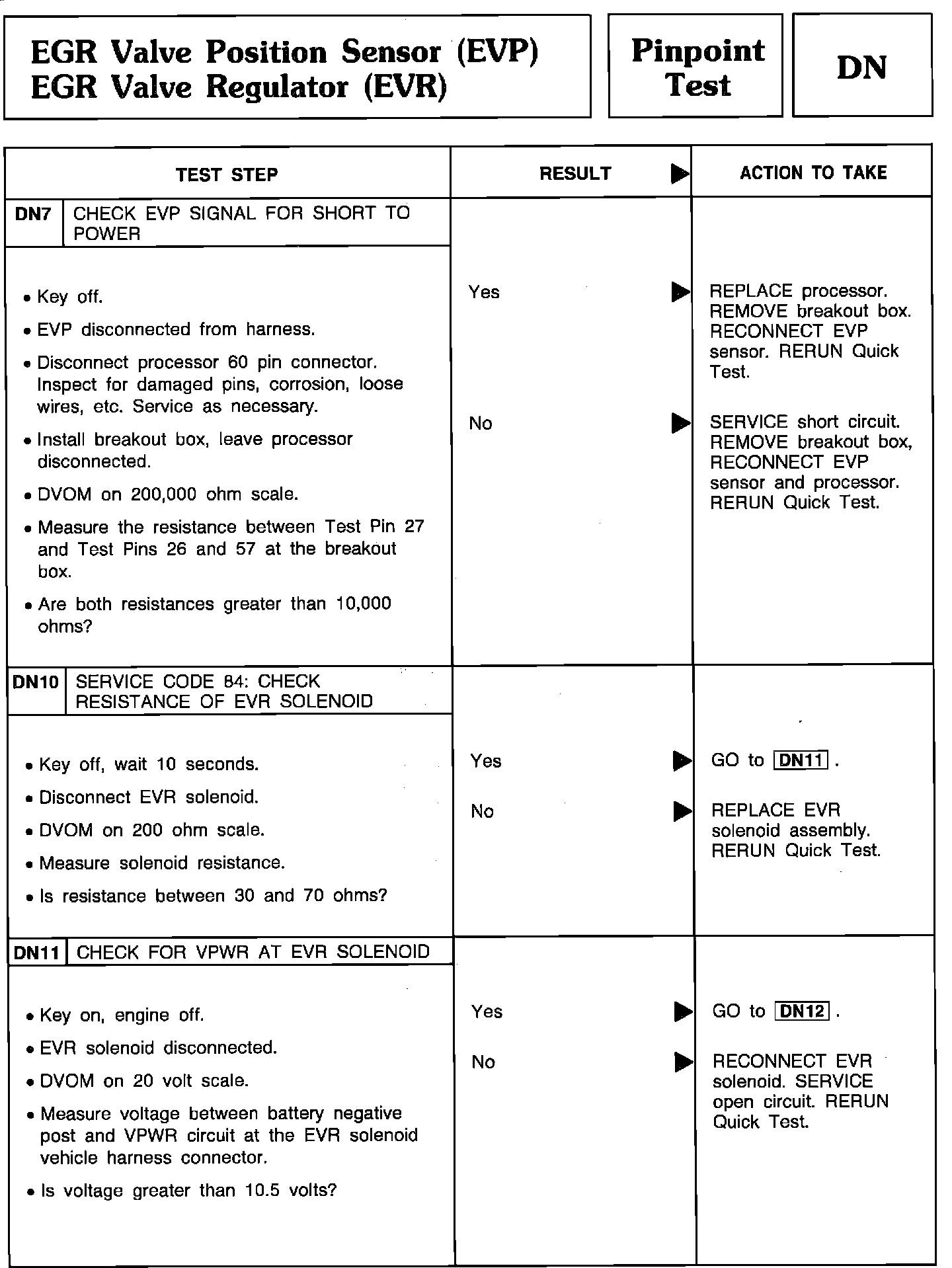 Pinpoint Test DN7 Thru DN11 - EGR Valve Position Sensor (EVP)/EGR Valve Regulator (EVR):
