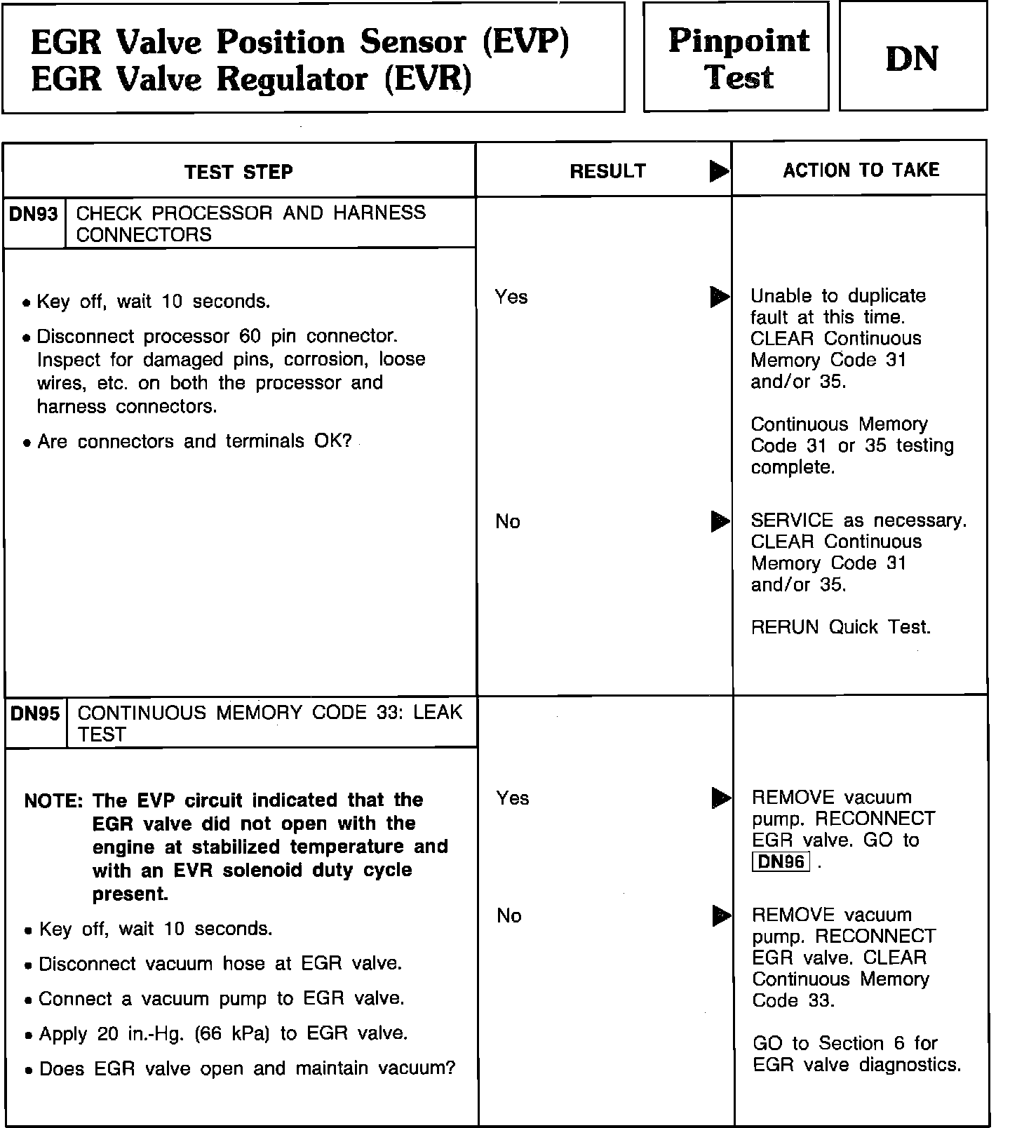 Pinpoint Test DN93 & DN95 - EGR Valve Position Sensor (EVP)/EGR Valve Regulator (EVR):