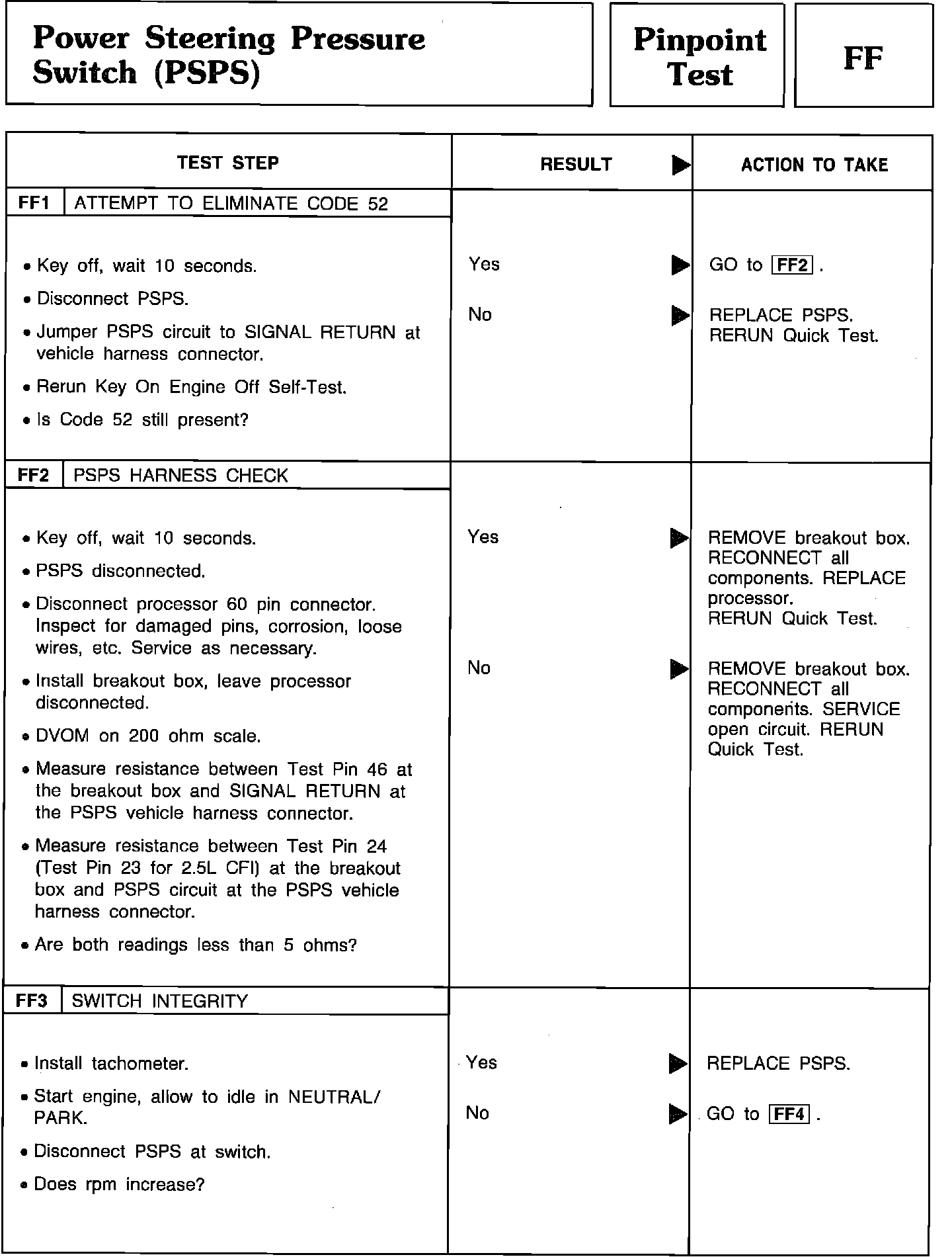 Pinpoint Test FF1 Thru FF3 - Power Steering Pressure Switch (PSPS):