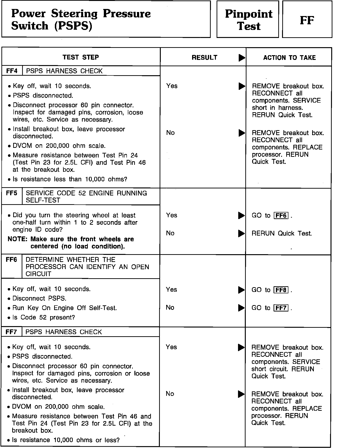 Pinpoint Test FF4 Thru FF7 - Power Steering Pressure Switch (PSPS):
