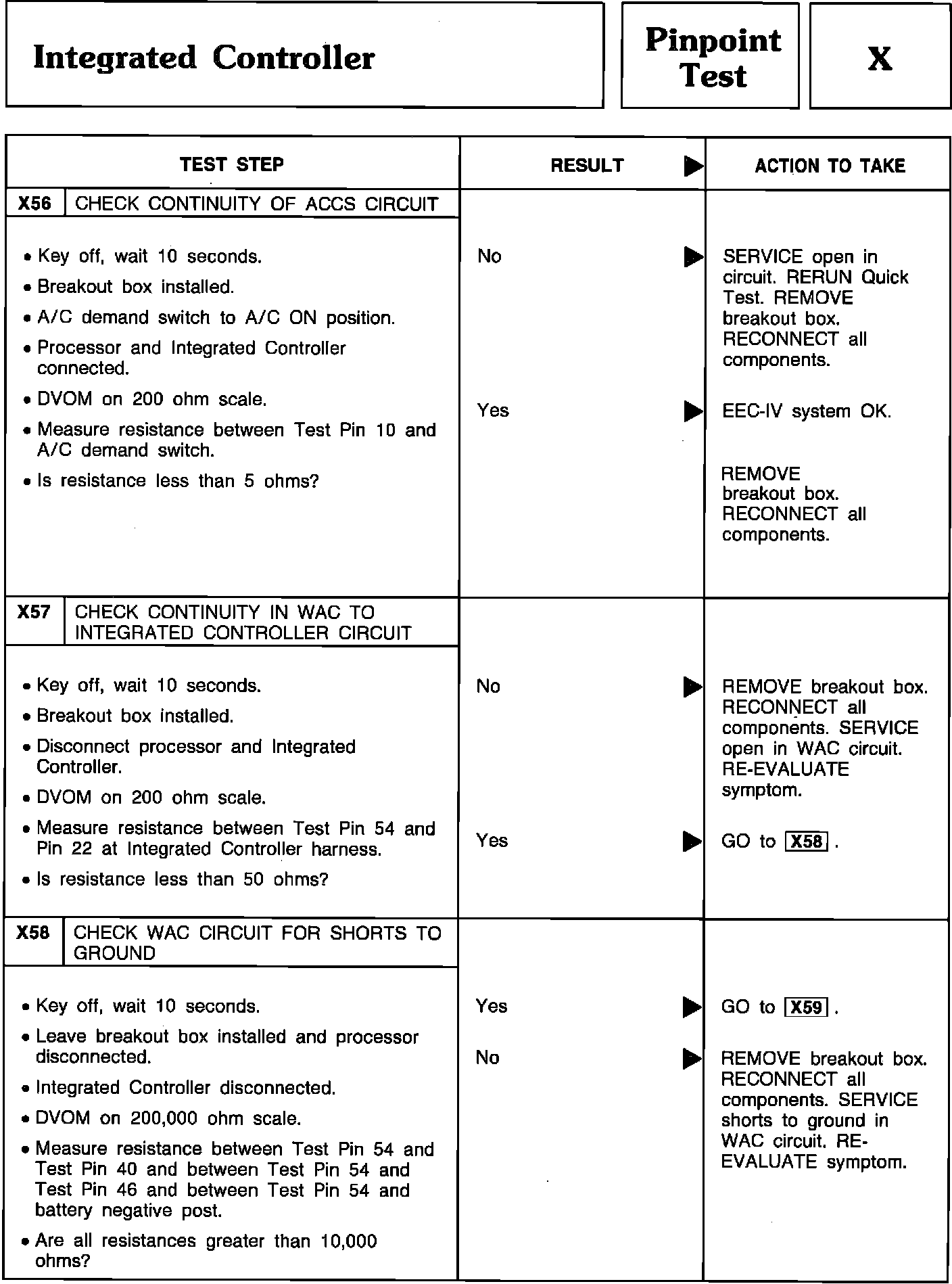 Pinpoint Test X56 Thru X58 - Integrated Controller: