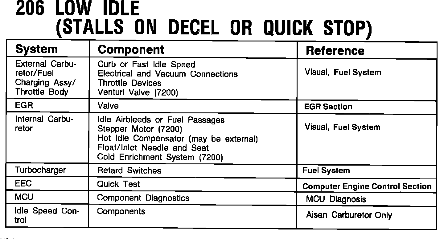 206 - Low Idle (Stalls On Decel or Quick Stop)