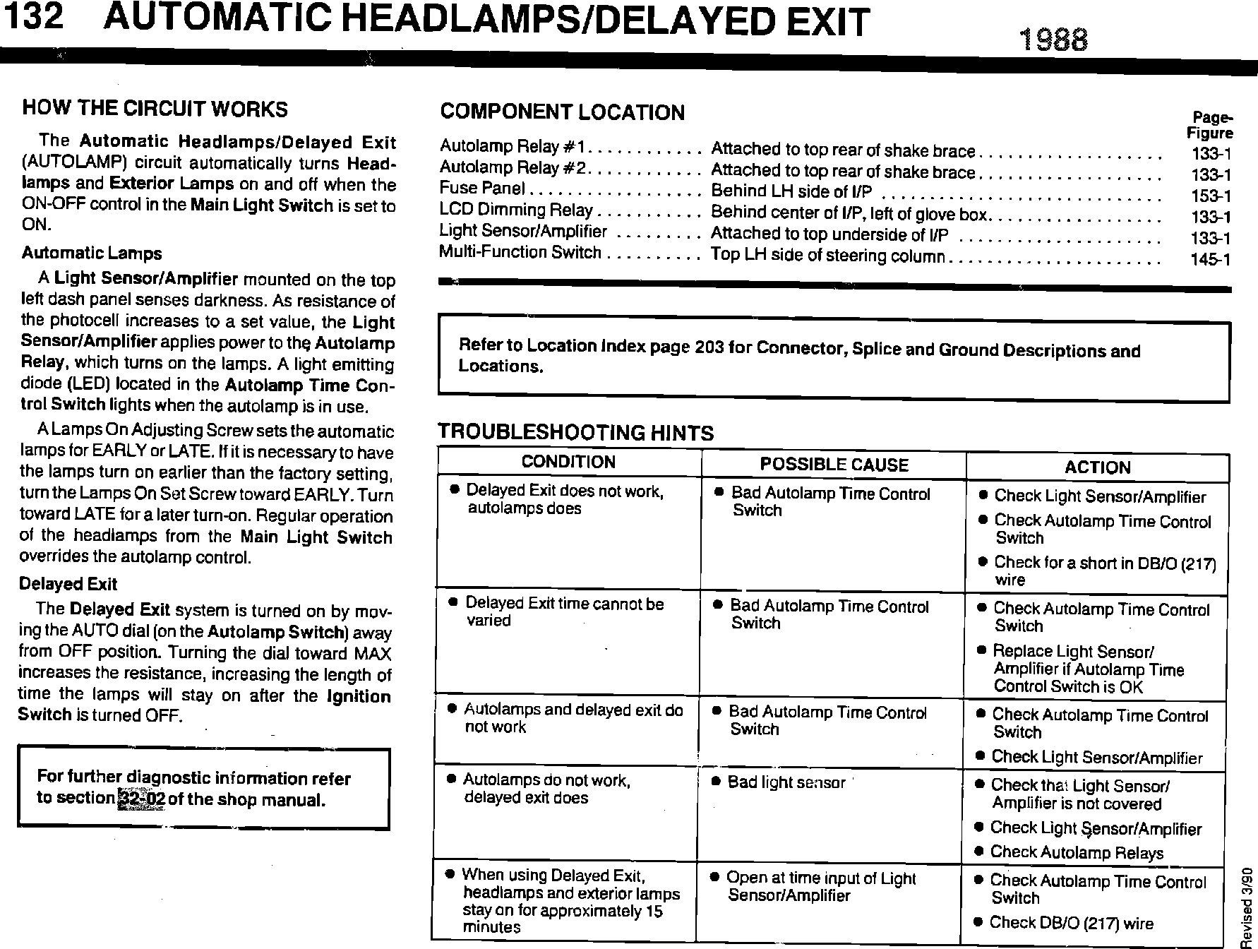 ISSUE: Page 132 of the 1988 Taurus/Sable EVTM incorrectly indicates a reference to Shop Manual Section 32-12. The correct section reference is Section 32-02 for further diagnostic information.