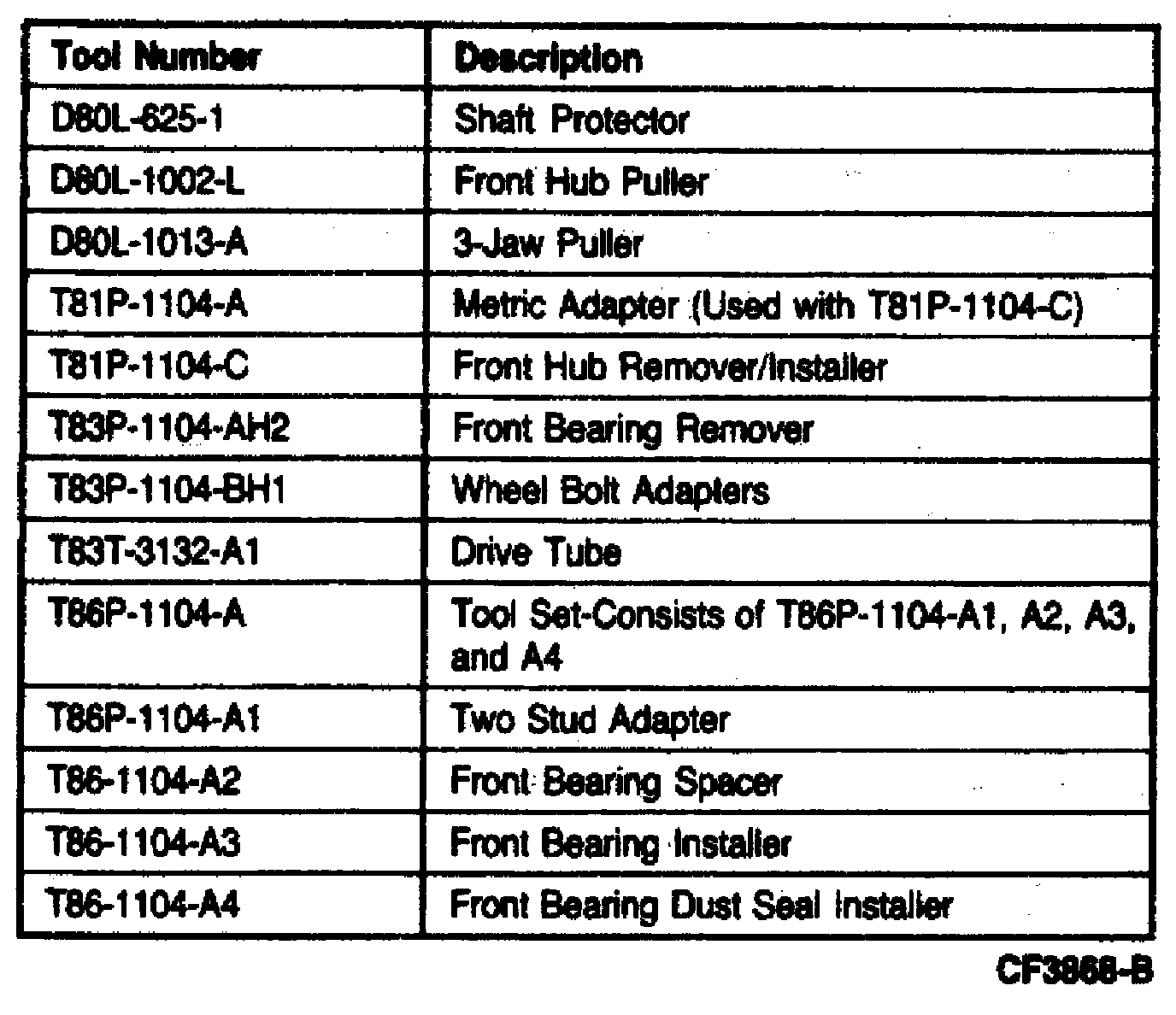 Special Service Tools: