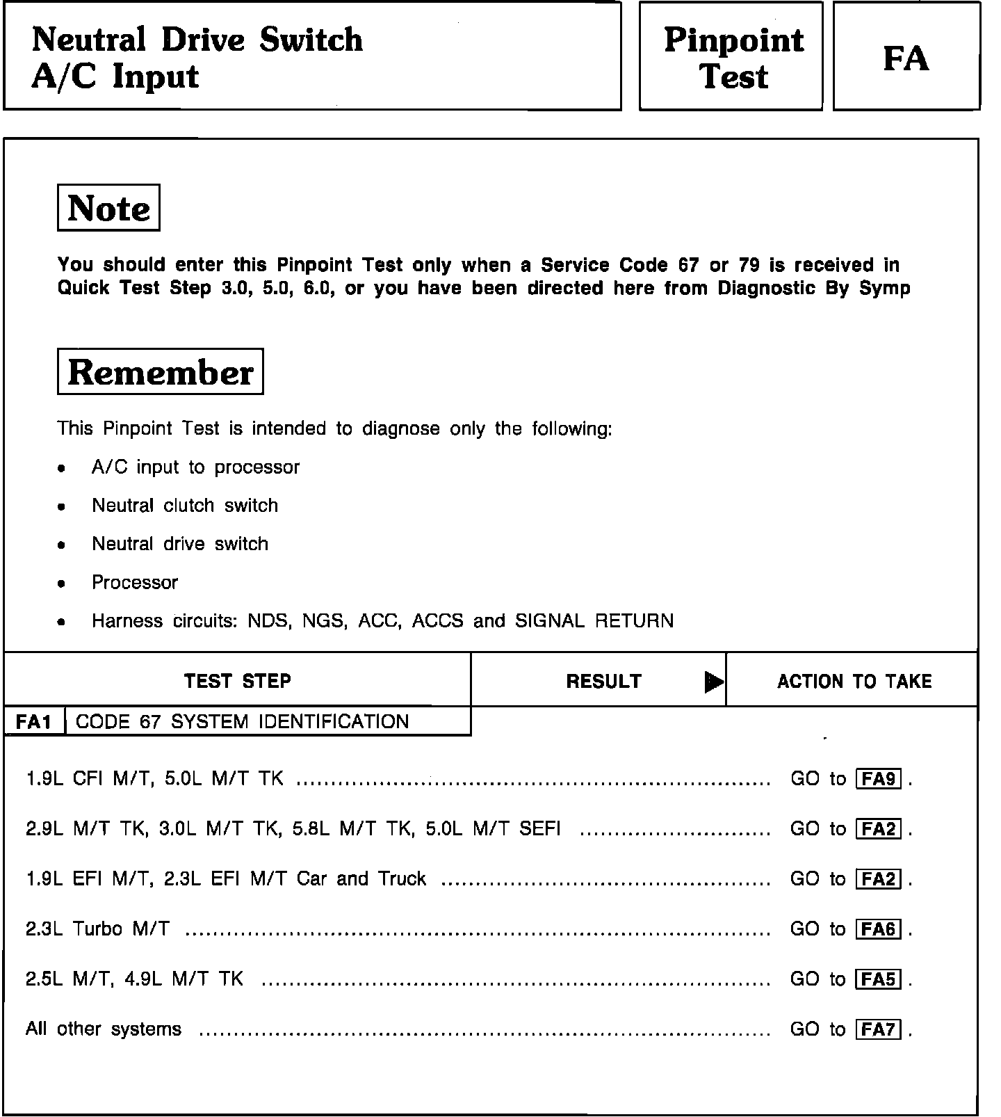 Pinpoint Test FA1 - Neutral Drive Switch A/C Input: