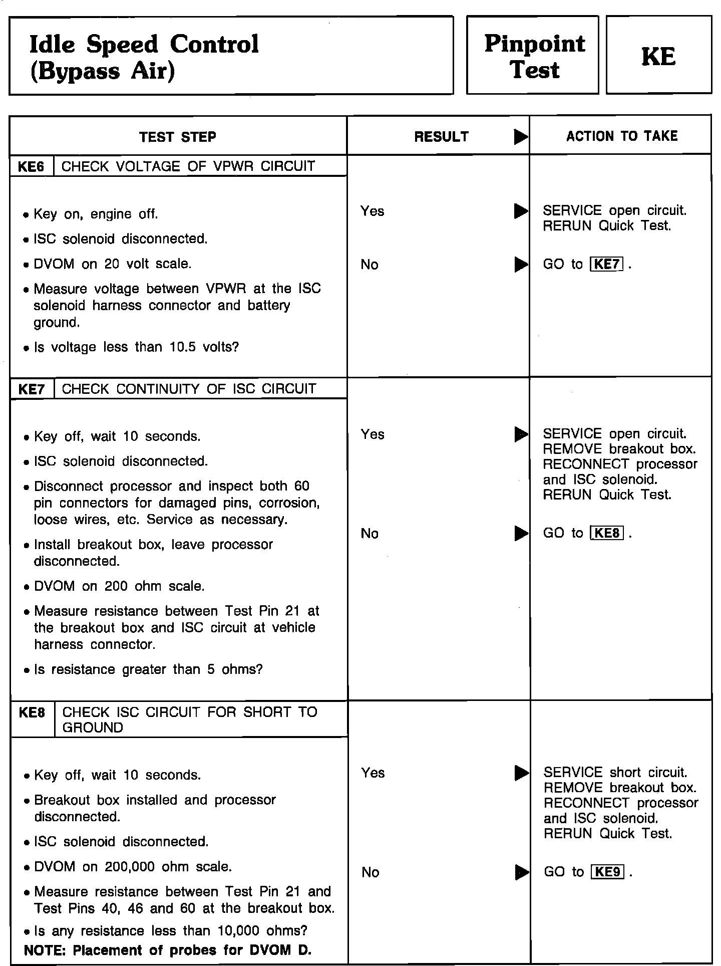Pinpoint Test KE6 Thru KE8 - Idle Speed Control (Bypass Air):