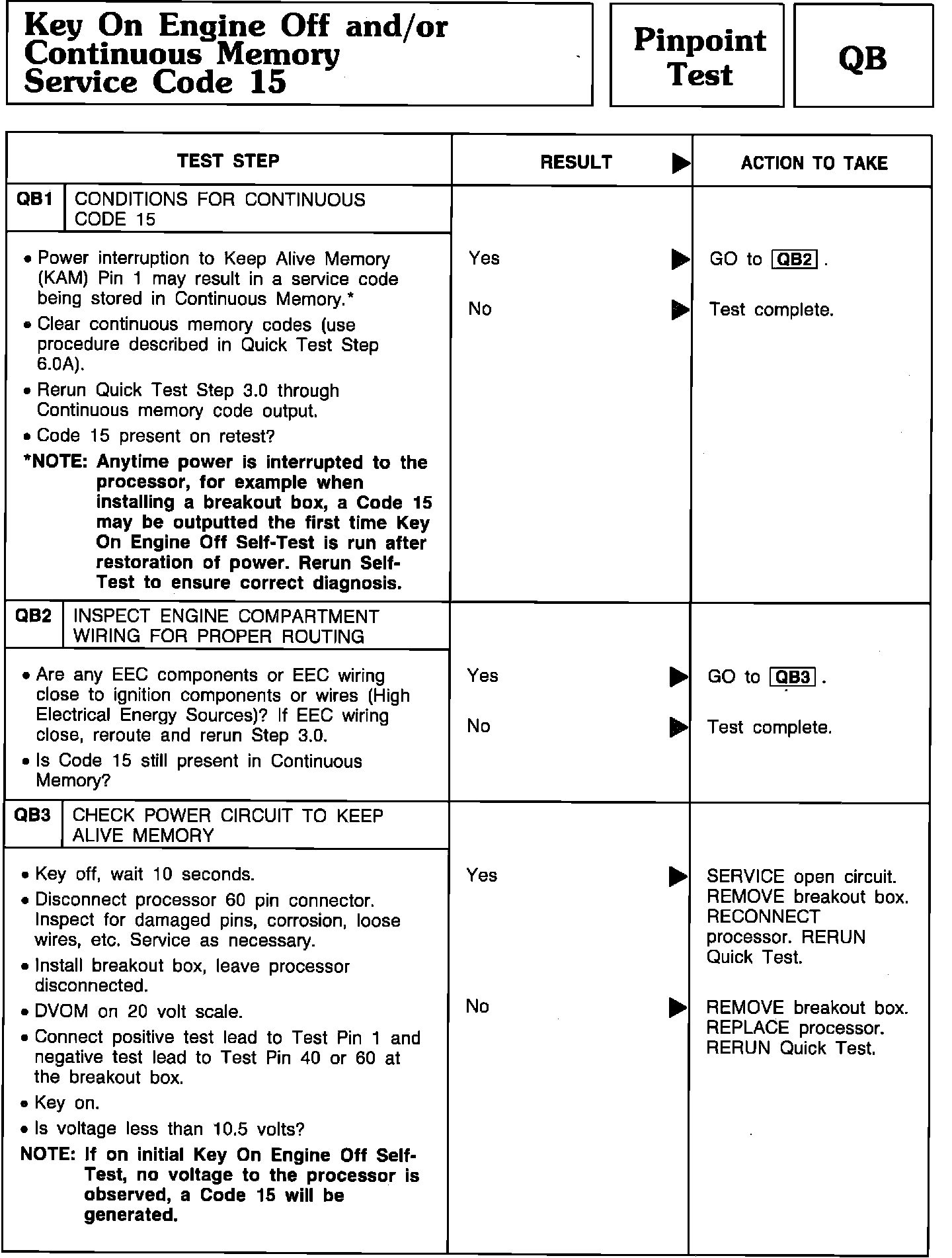 Pinpoint Test QB1 Thru QB3 - Key On Engine Off and/or Continuous Memory Code 15: