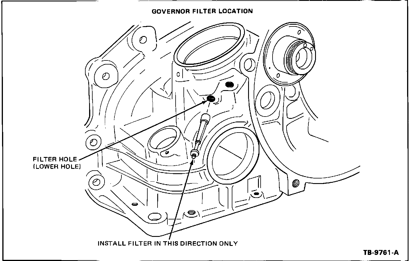 NOTE: THE GOVERNOR ASSEMBLY MUST BE REMOVED BEFORE INSTALLING THE NEW DESIGN FILTER. POSITION THE FILTER AS SHOWN IN FIGURE 6.