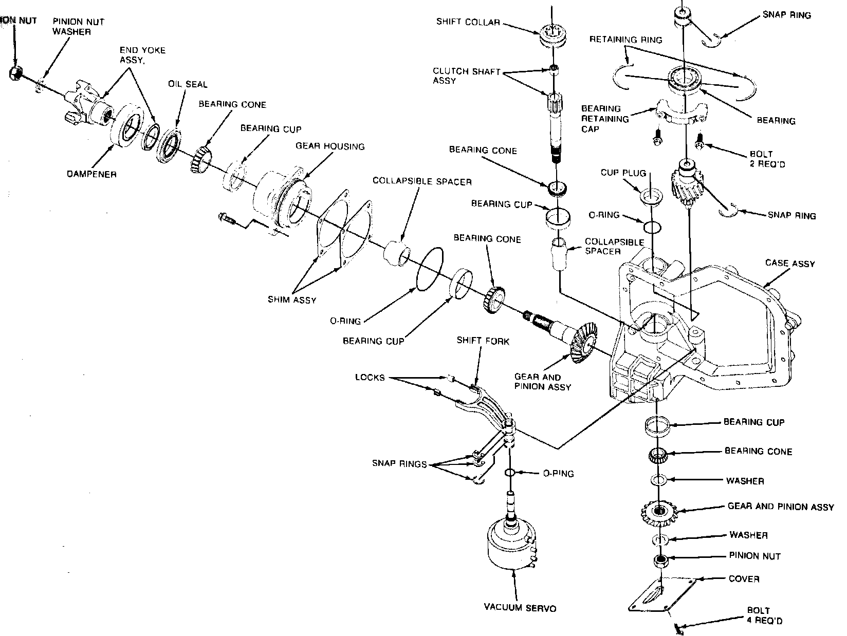 Fig. 1 Disassembled view of all wheel drive transfer case assembly:
