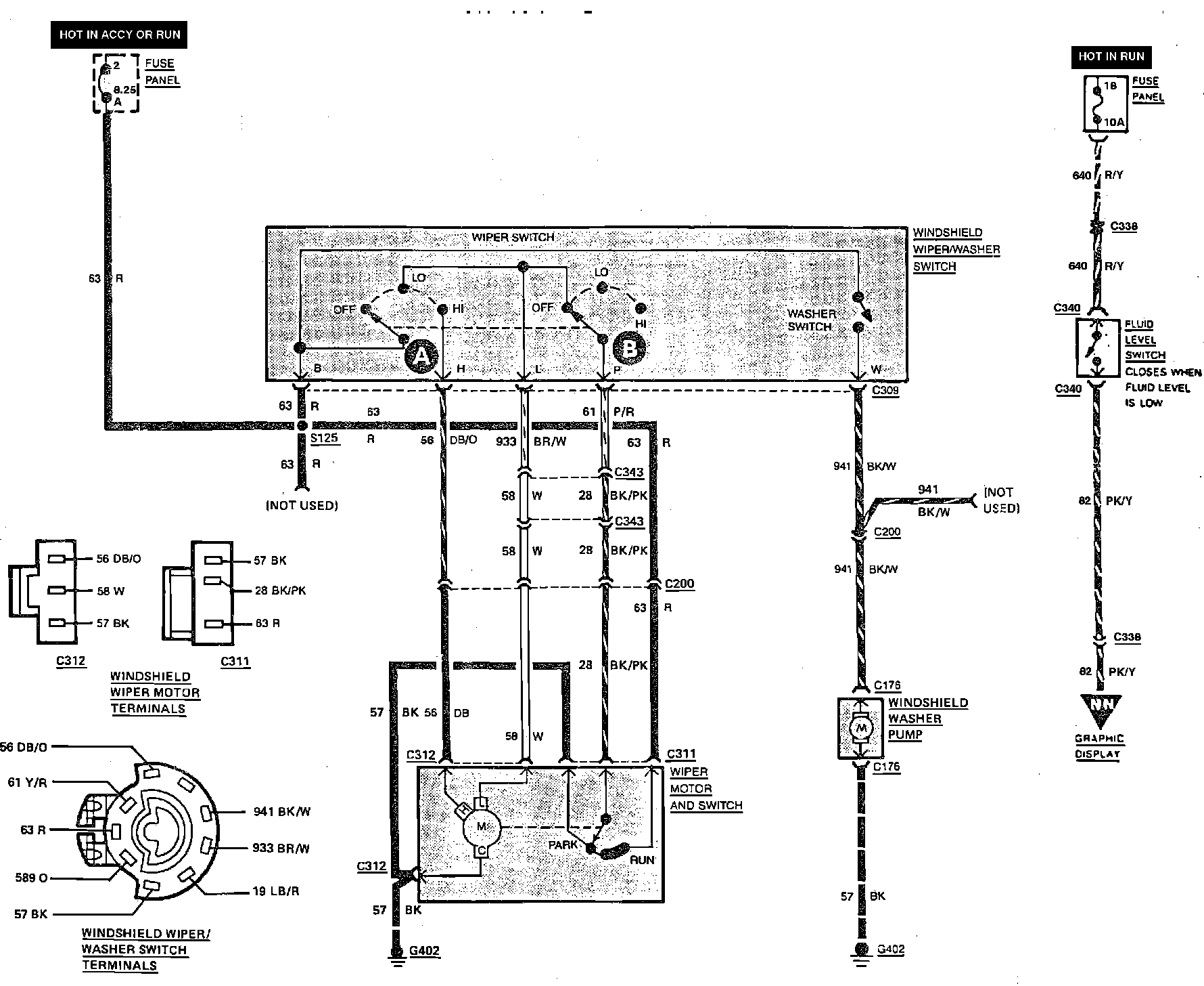 Windshield Washer & Wiper Wiring Circuit. Less Interval: