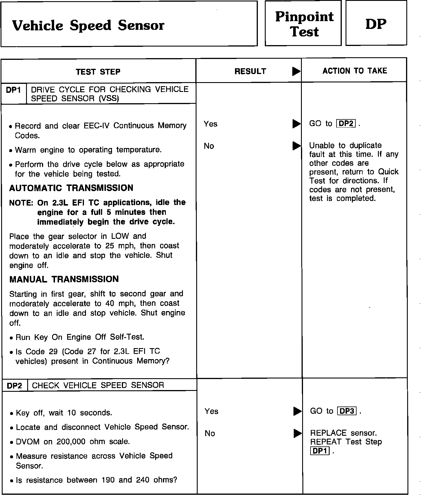 Pinpoint Test DP1 & DP2 - Vehicle Speed Sensor: