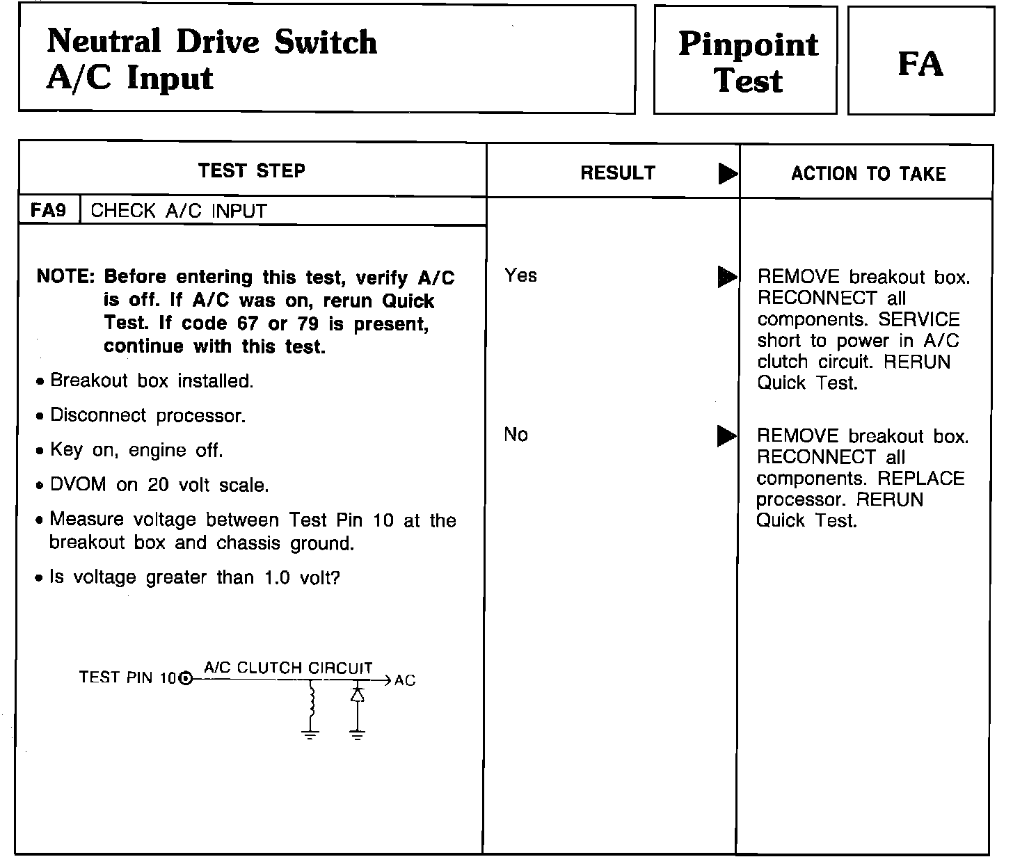 Pinpoint Test FA9 - Neutral Drive Switch A/C Input: