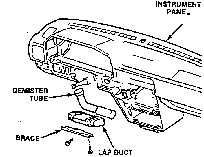 3. Remove two screws attaching lap duct register panel and remove panel.