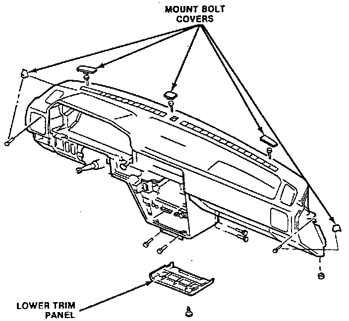 18. Remove nine instrument panel mounting bolts and two mounting nuts.