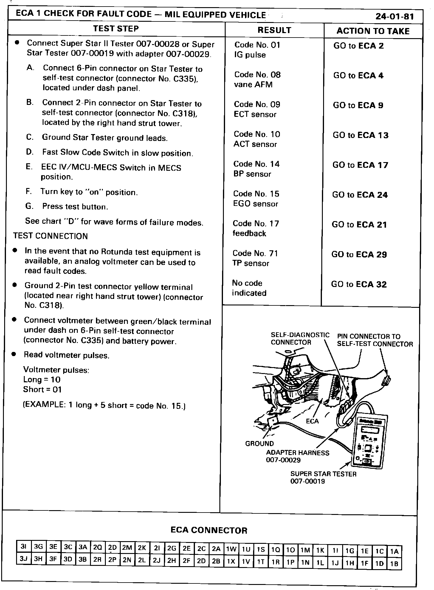 ECA 1 CHECK FOR FAULT CODE - MIL EQUIPPED VEHICLE: