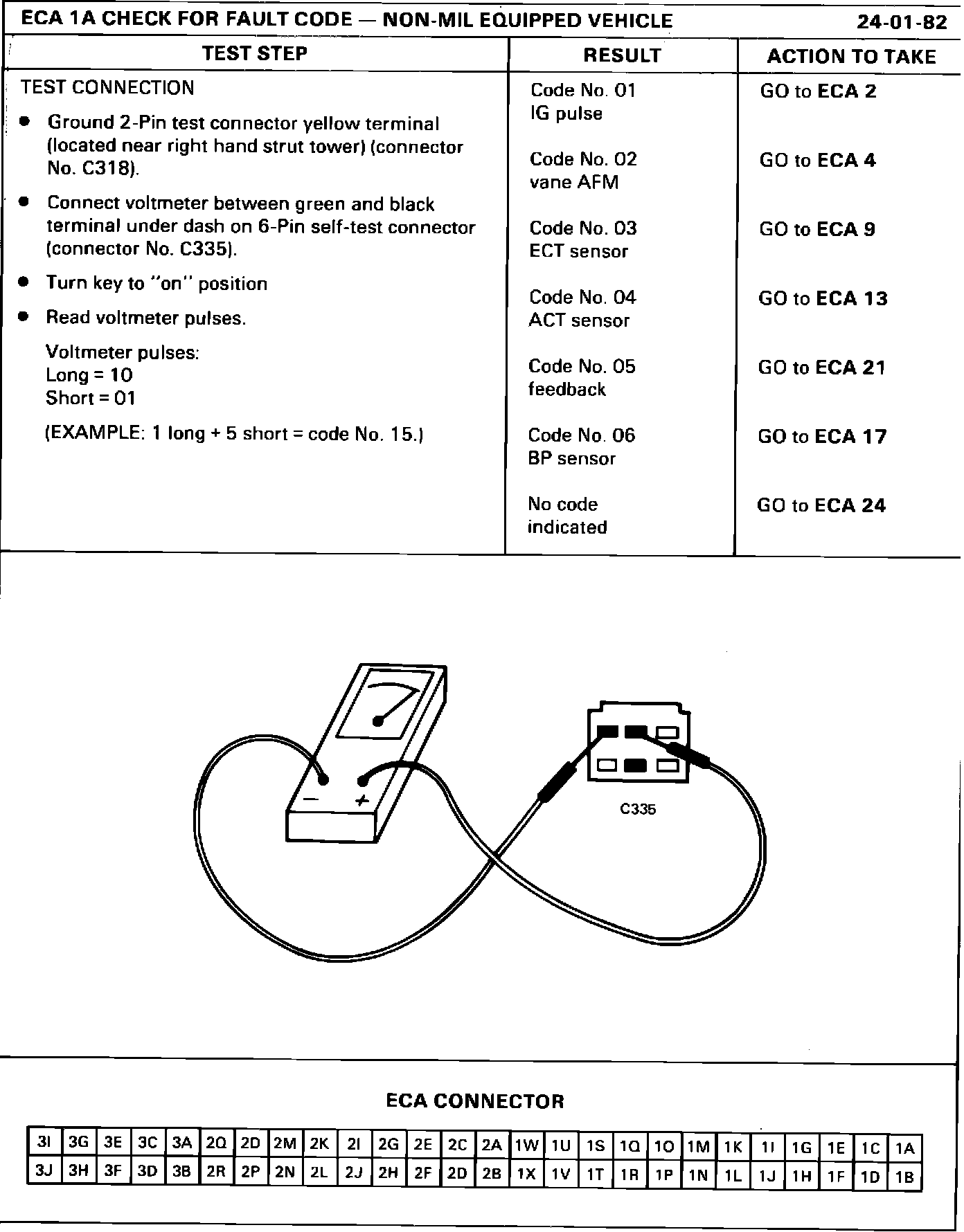 ECA 1A CHECK FOR FAULT CODE - NON-MIL EQUIPPED VEHICLE: