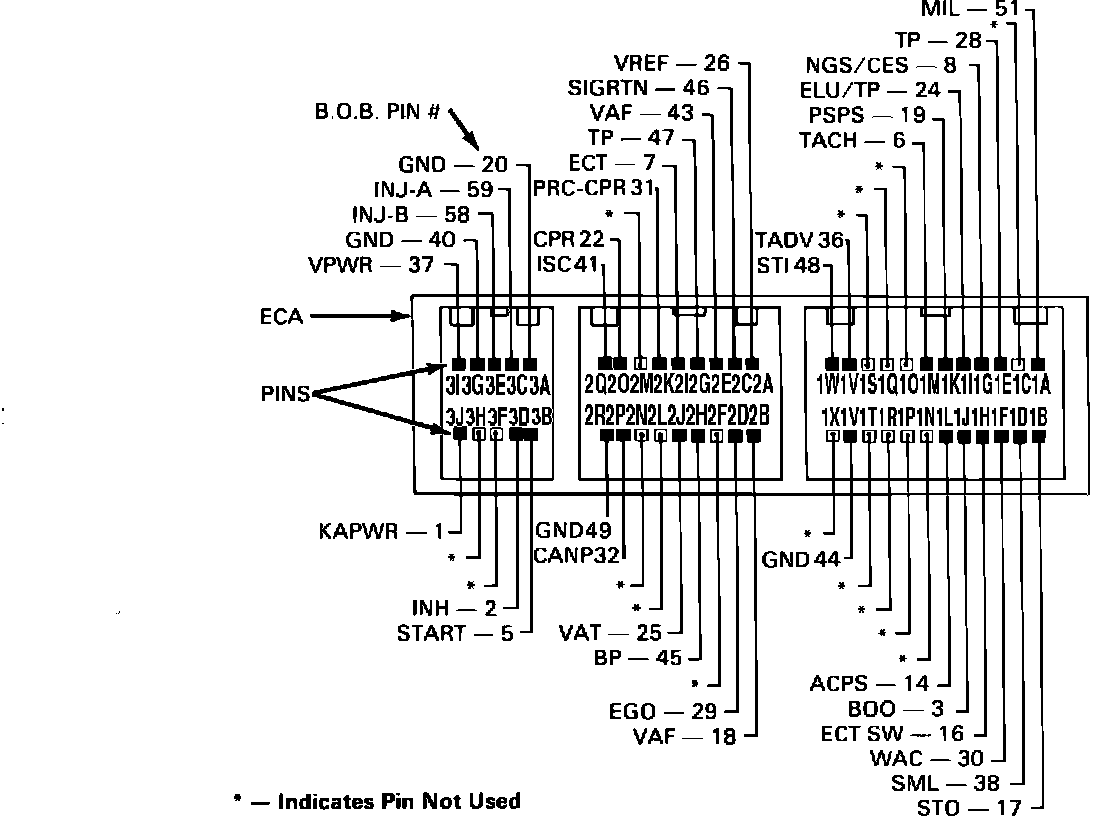 FIGURE 5 - EFCS BREAKOUT BOX PIN TO PROCESSOR PIN CONVERSION CHART - TRACER BUILT AFTER 11/01/87: