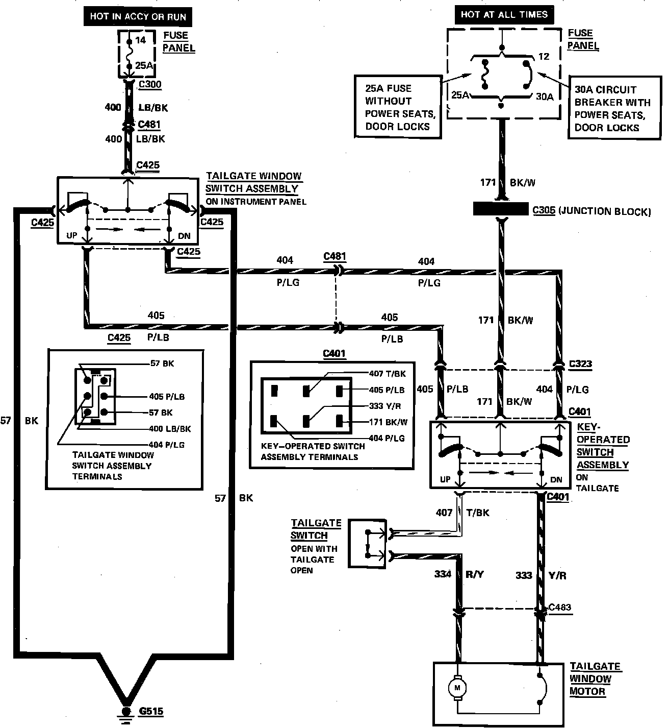 Power Windows Wiring Circuit. Tailgate: