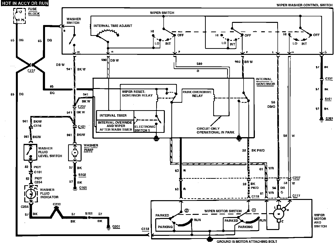Fig. 6 Wiper System Wiring Schematic (Intermittent):