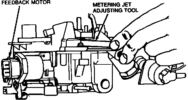 4. Using a metering jet adjusting tool, turn each main metering jet clockwise until it is seated lightly in the casting. Then turn each jet counterclockwise the number of turns recorded during disassembly (39).
