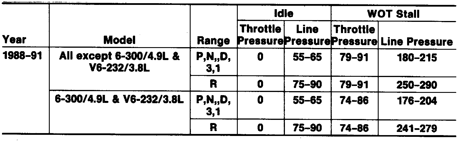 5. Apply service and parking brakes, then shift selector lever through all ranges. Record line pressure and throttle pressure readings at idle.
