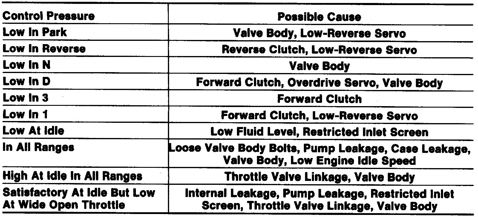 Control Pressure Diagnosis Chart: