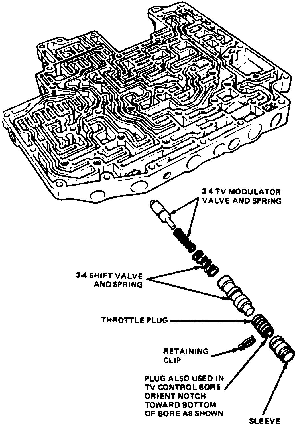 Removing Or Installing 3-4 Shift And 3-4 TV Modulator Valves: