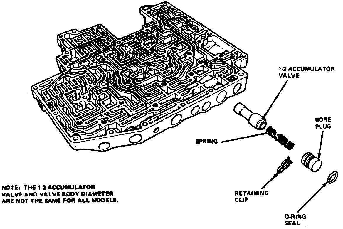 b. The 1-2 accumulator valve and valve body diameter are not the same for all models.