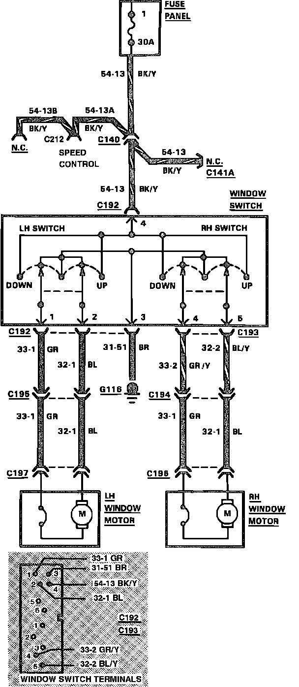 Power Windows Wiring Circuit: