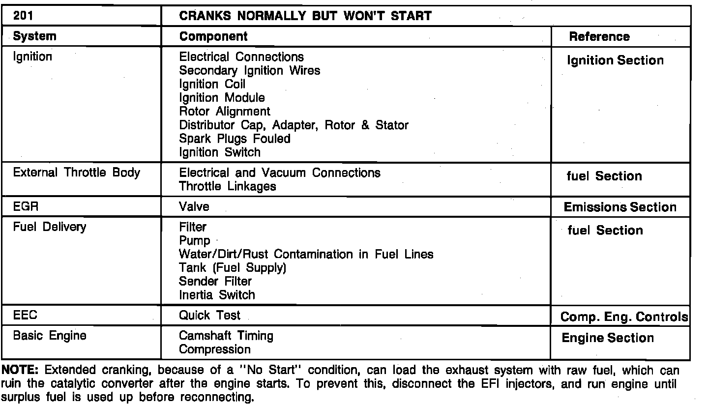 201 - Cranks Normally But Won't Start