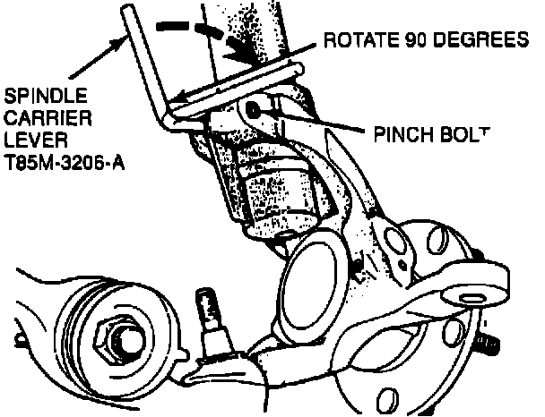 a. Insert the spindle carrier lever (T85M-3206-A) into the new spindle carrier slot, Figure 3.