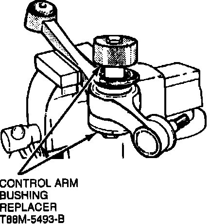 b. Install the control arm to bushing replacer (T88M-5493-B) or equivalent, Figure 5.