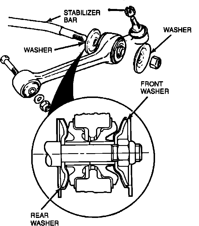 20. Tighten the stabilizer bar to control arm attaching nut to 52-81 ft.lbs. (70-110 N-m). Make sure the front washer does not rotate with the nut during tightening.