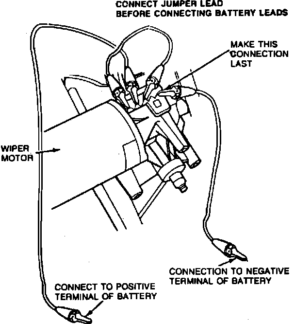 4. Make test connections as shown Fig. 43. Wiper motor should run one full cycle then park.
