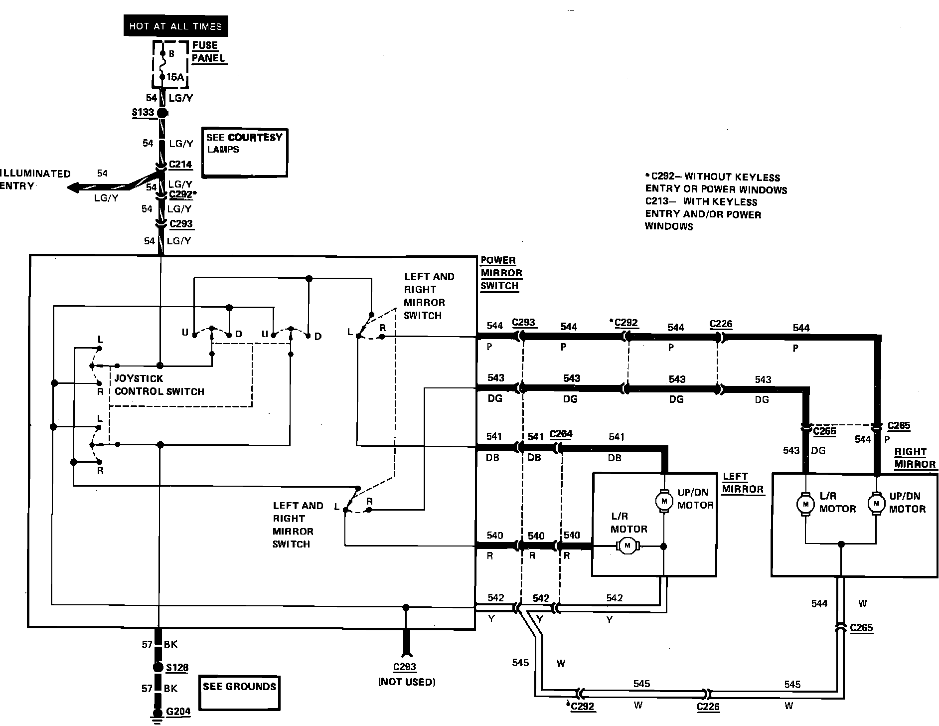 Power Mirrors Wiring Circuit: