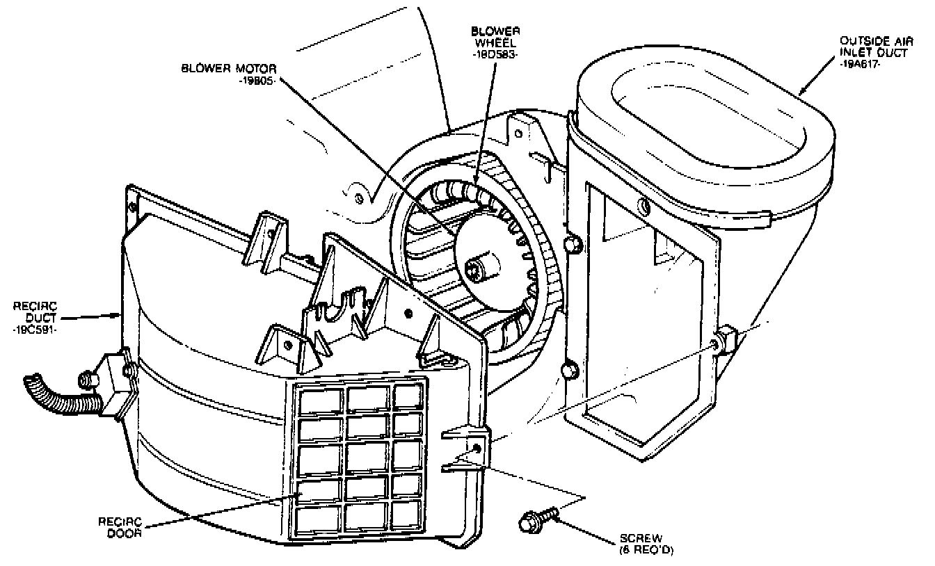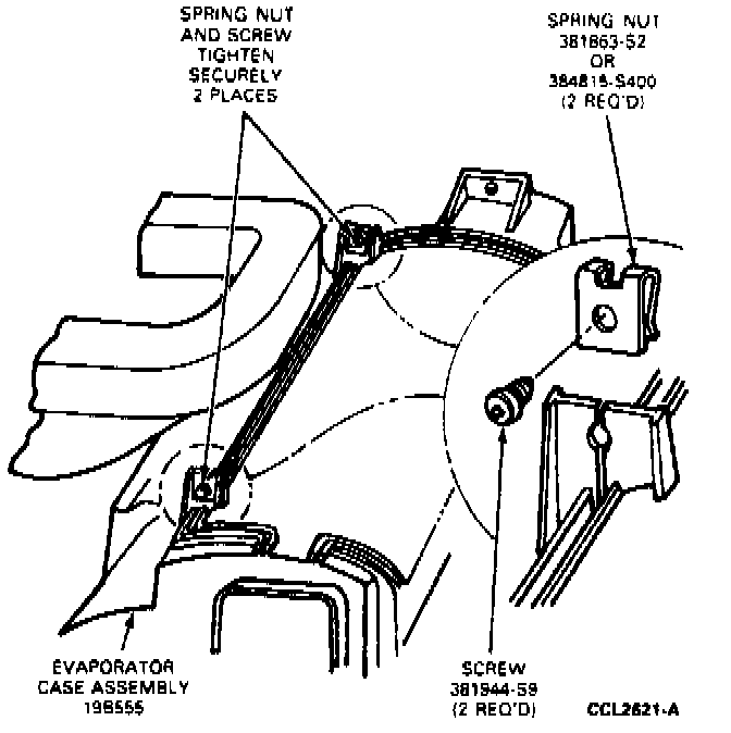 5. Install air inlet duct to evaporator case and tighten two screws.