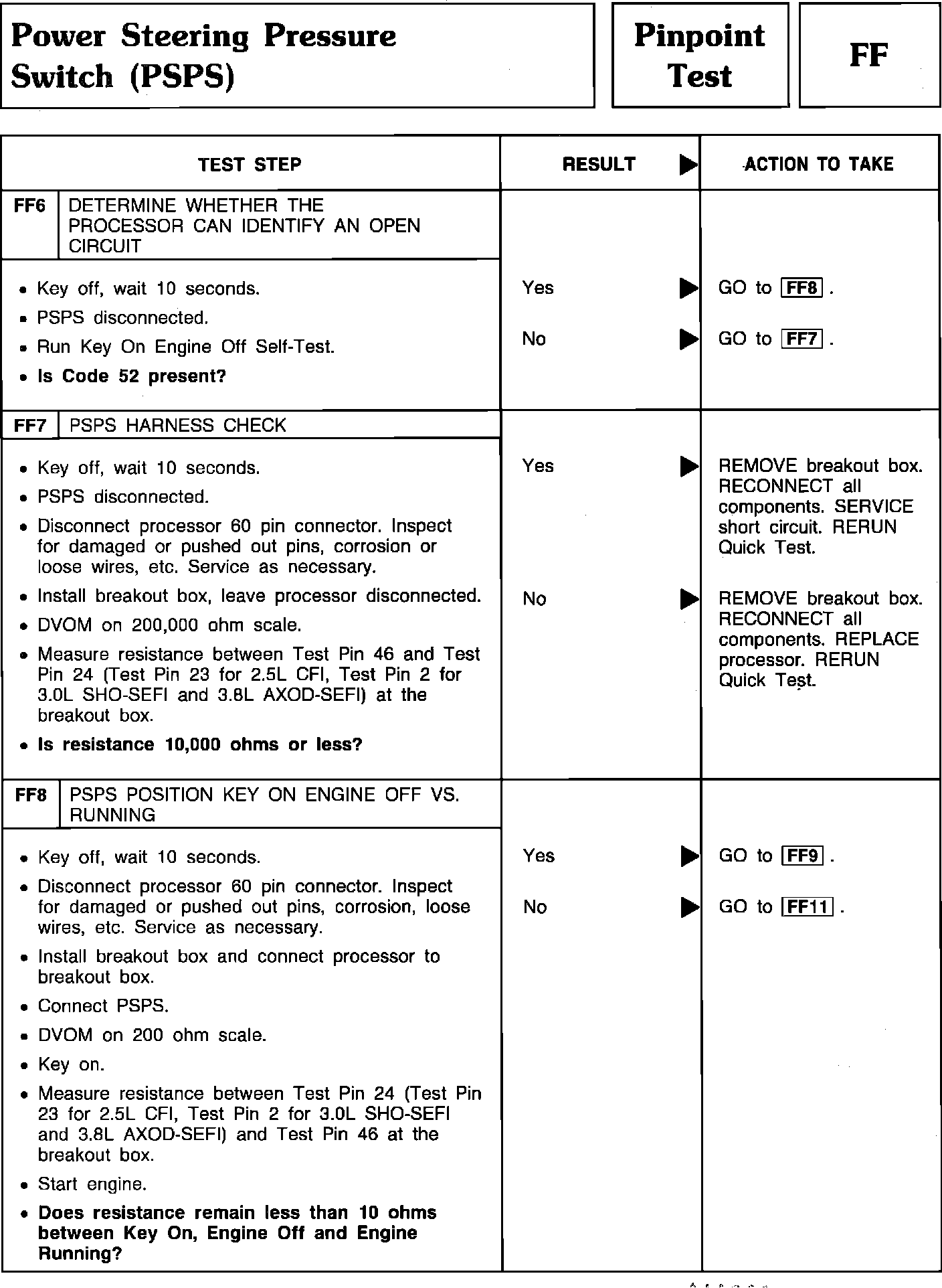 Pinpoint Test FF6 & FF8 - Power Steering Pressure Switch (PSPS):