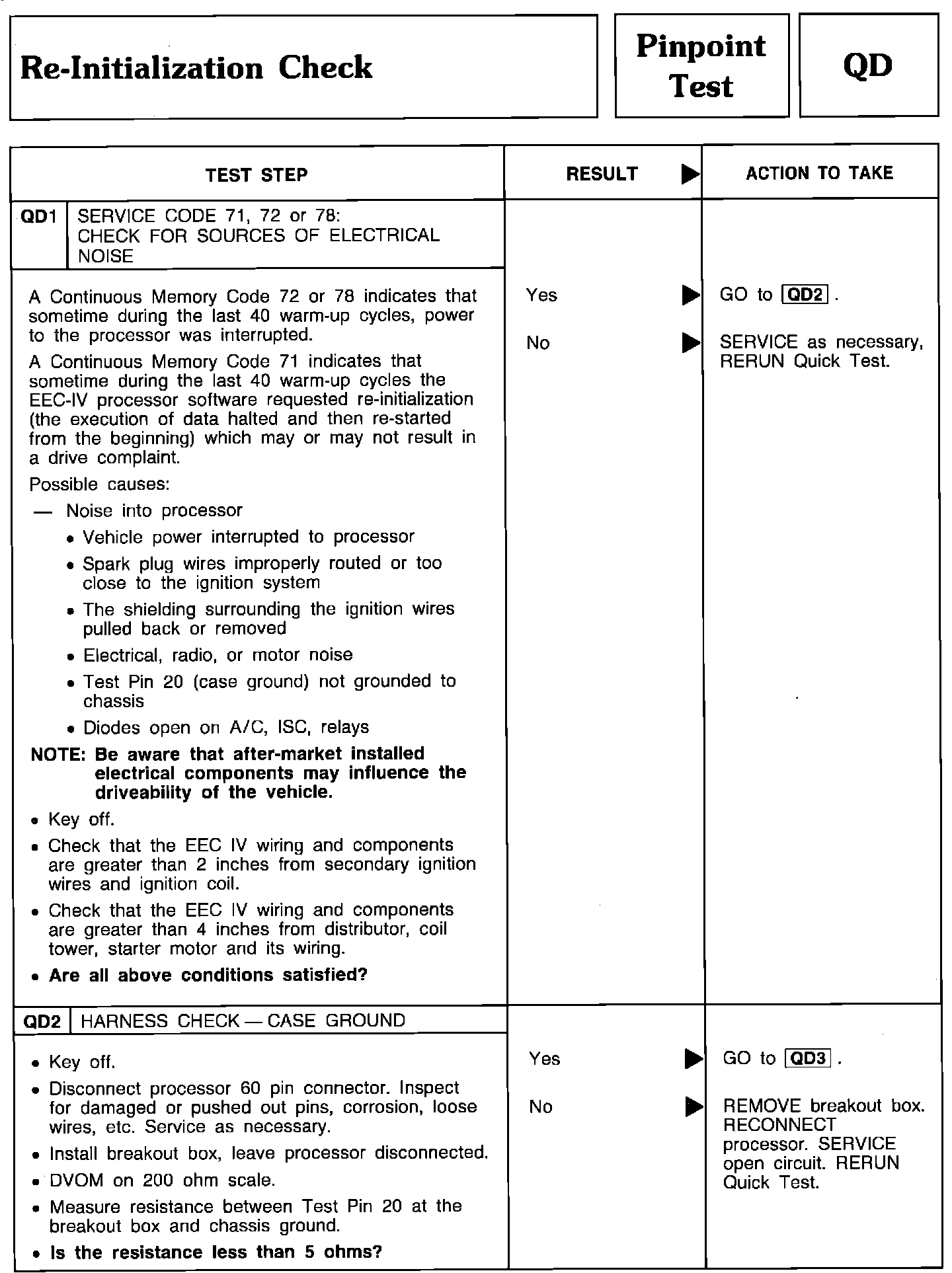 Pinpoint Test QD1 & QD2 - Re-Initialization Check: