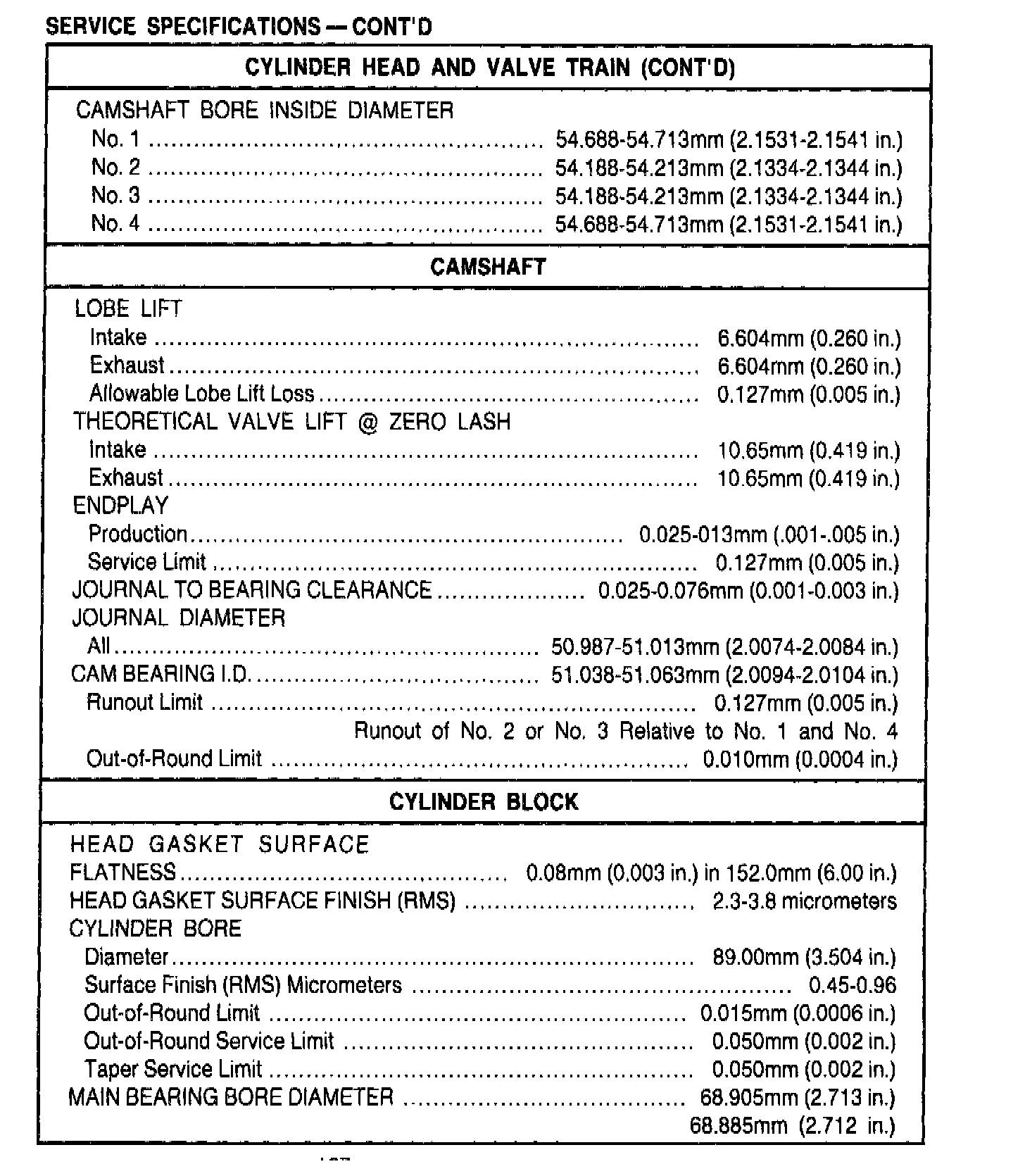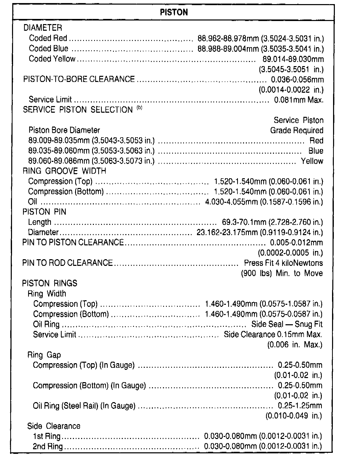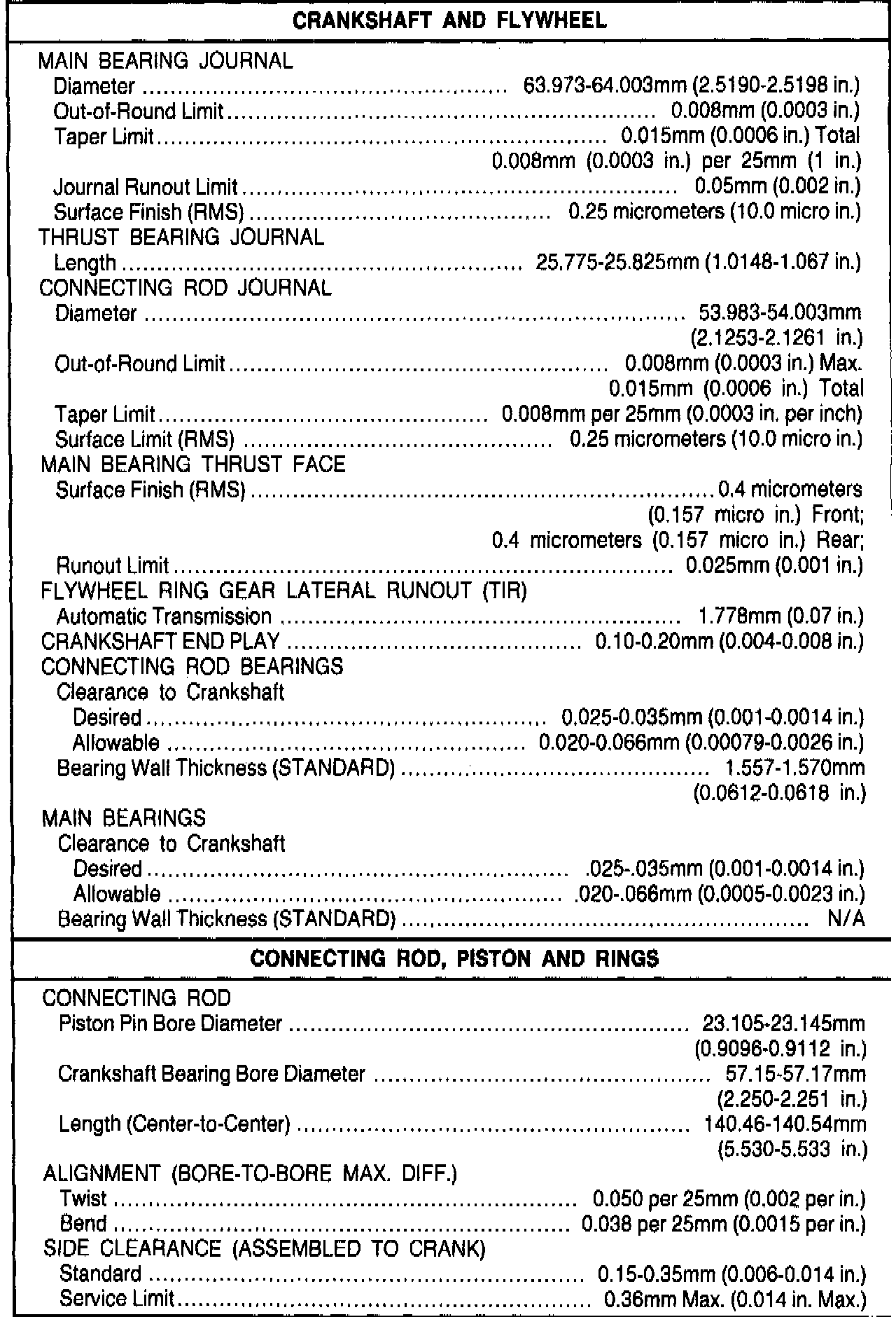 General Engine Specifications