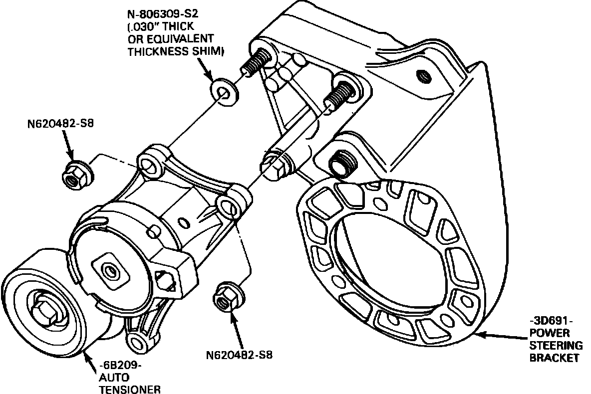 6. Reinstall the tensioner assembly and tighten the three fasteners to 35 ft.lbs. (47 N-m).