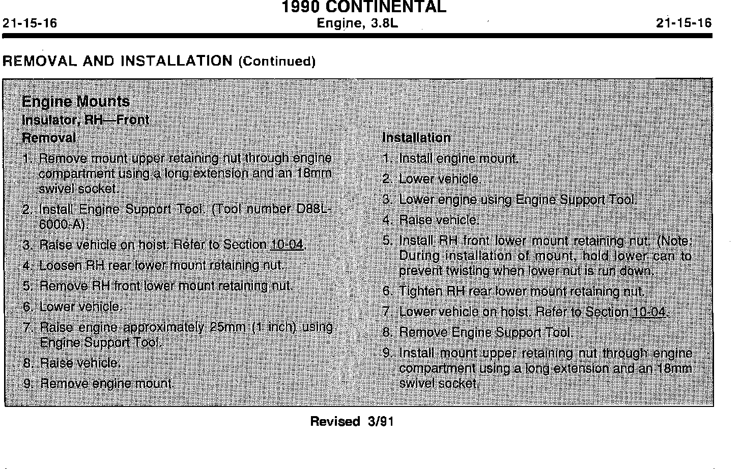 1990 Continental Engine, 3.8L