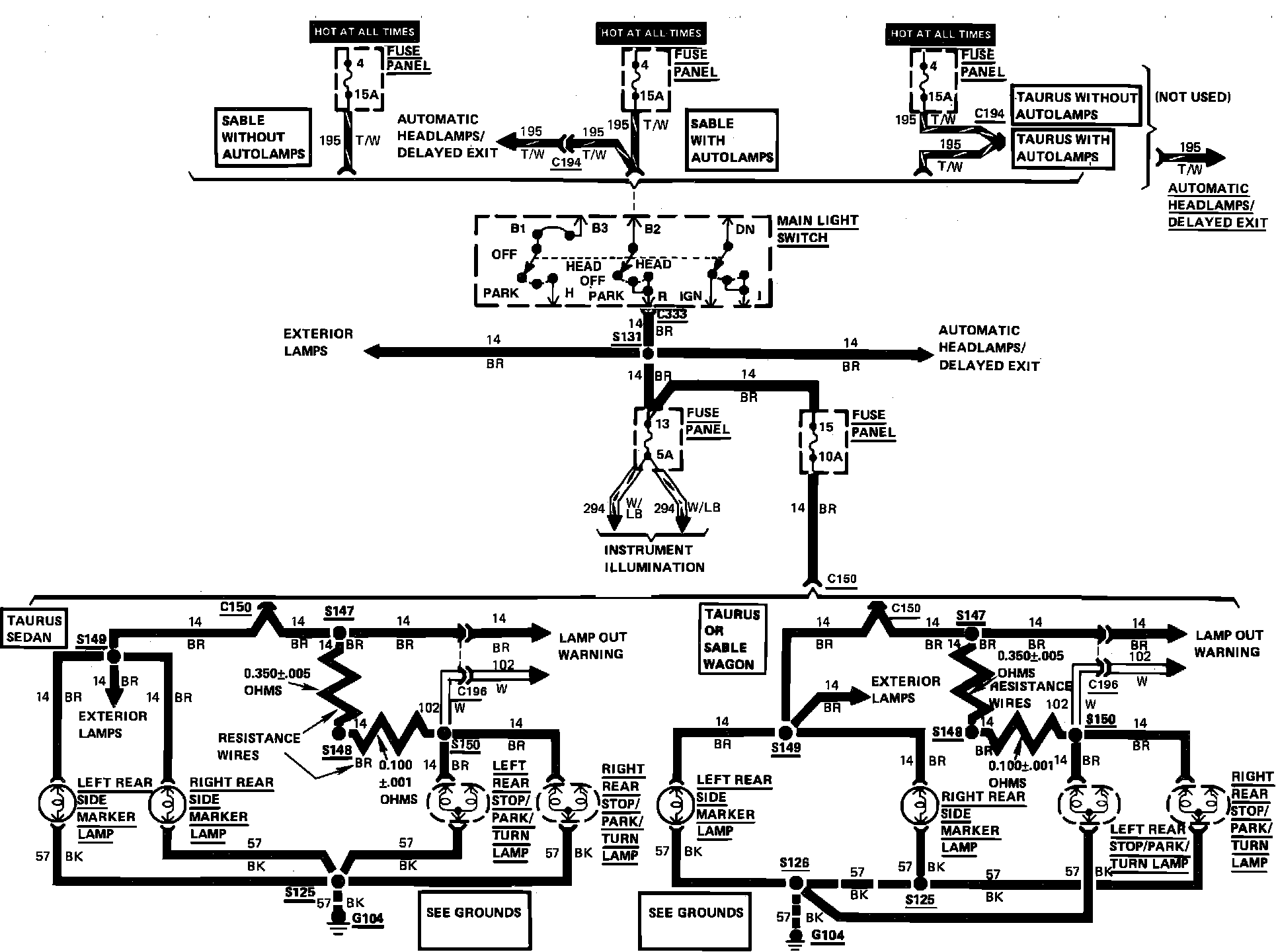 Exterior Lamps Wiring Circuit (Wagon With Diagnostic Warning):
