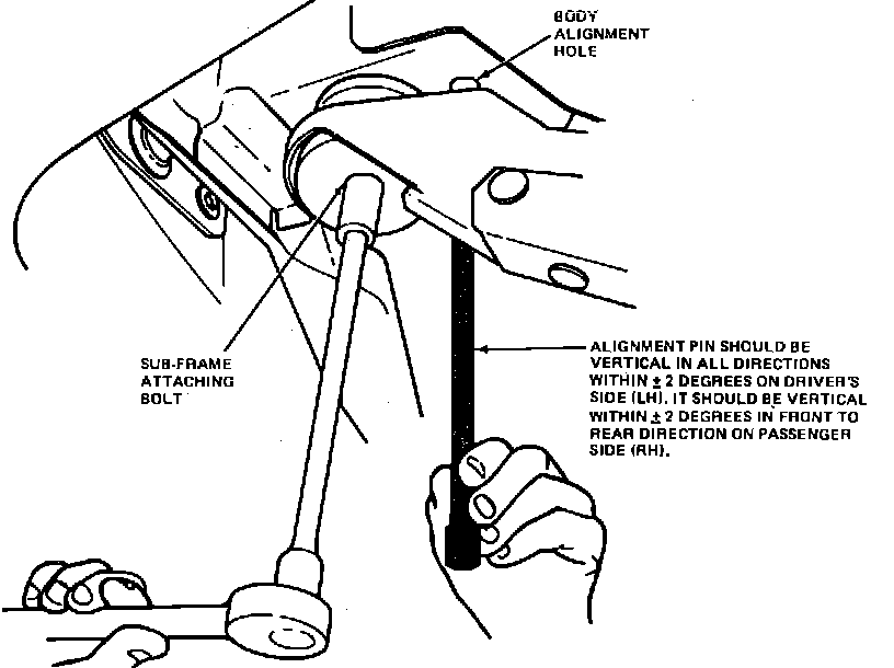 1. Prior to aligning the front end, the sub-frame alignment must be checked using the following procedure.