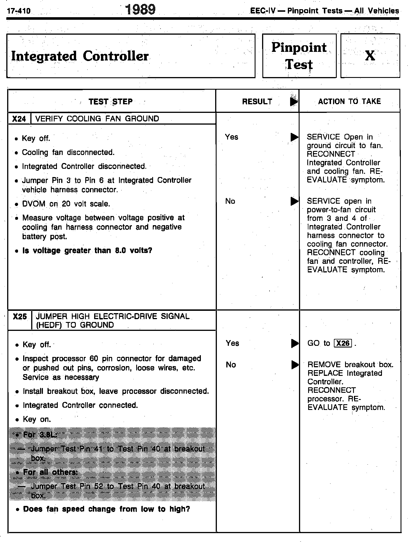 ISSUE: Integrated Relay Control Module (IRCM) diagnostics for the 3.8L Taurus/Sable and Continental must be revised. Page 17-410 of the 1989 Engine/Emissions Diagnosis Manual is affected.