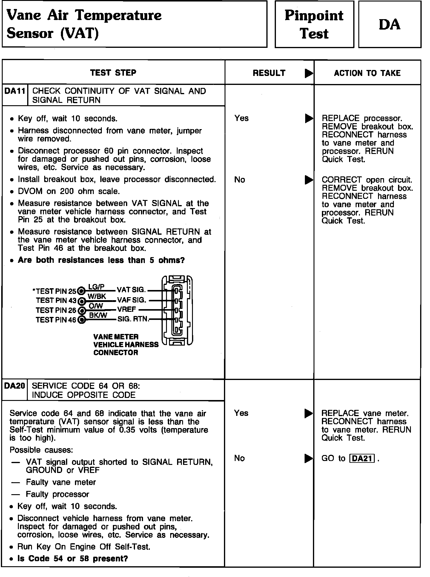 Pinpoint Test DA11 & DA20 - Vane Air Temp. Sensor (VAT):