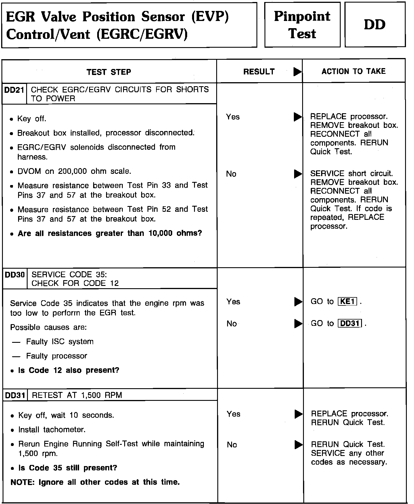 Pinpoint Test DD21 Thru DD31 - EGR Valve Position Sensor (EVP) Control/Vent (EGRC/EGRV):