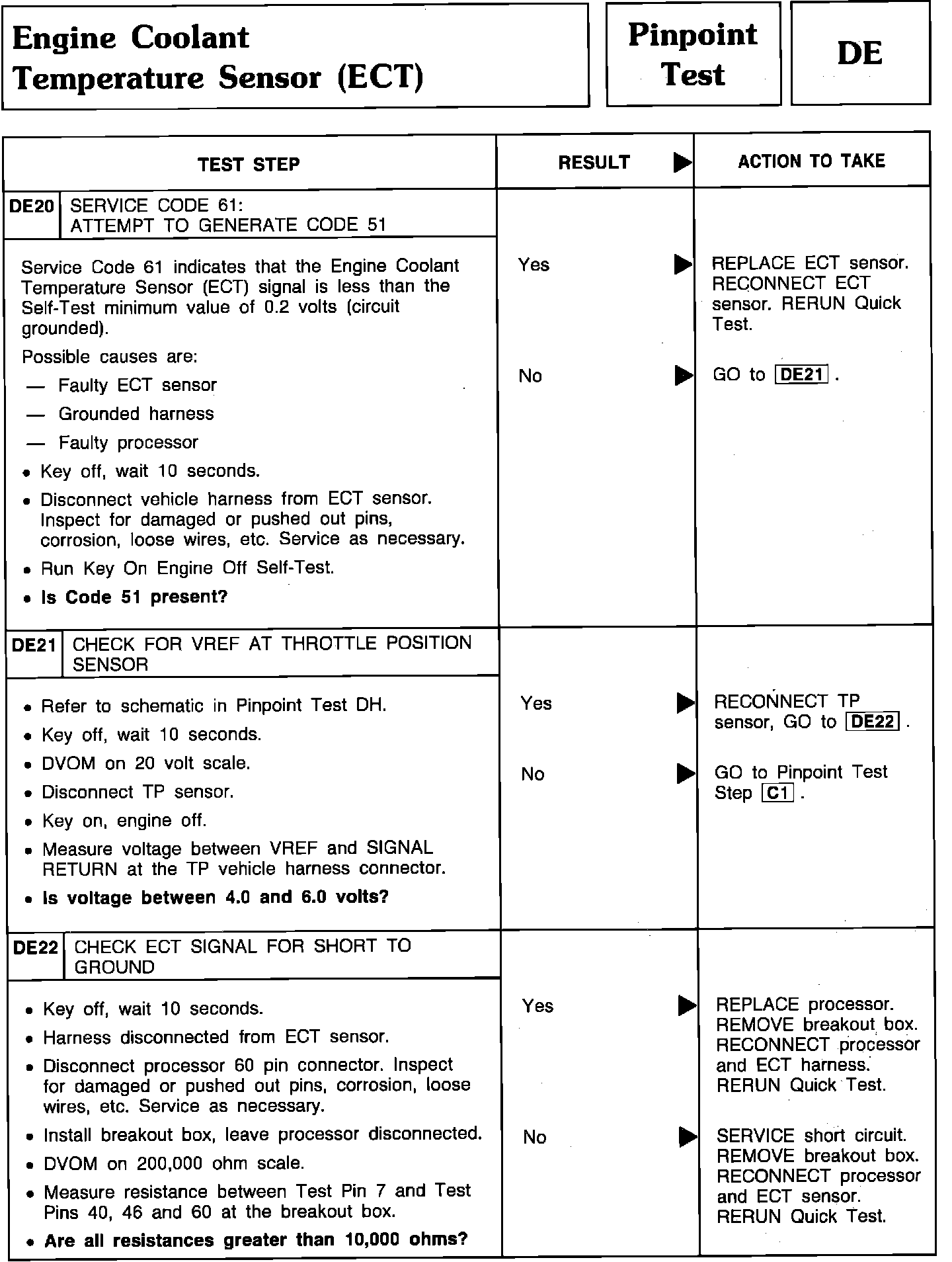 Pinpoint Test DE20 Thru DE22 - Engine Coolant Temperature Sensor (ECT):