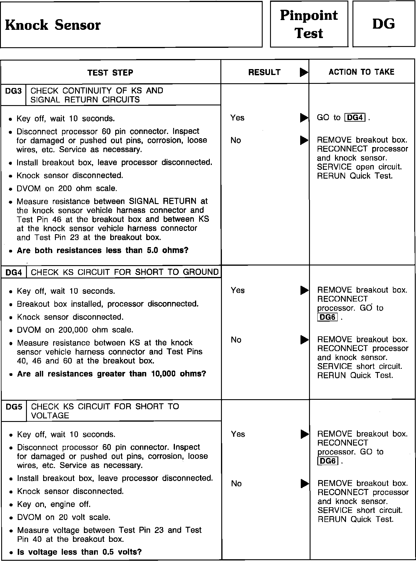 Pinpoint Test DG3 Thru DG5 - Knock Sensor: