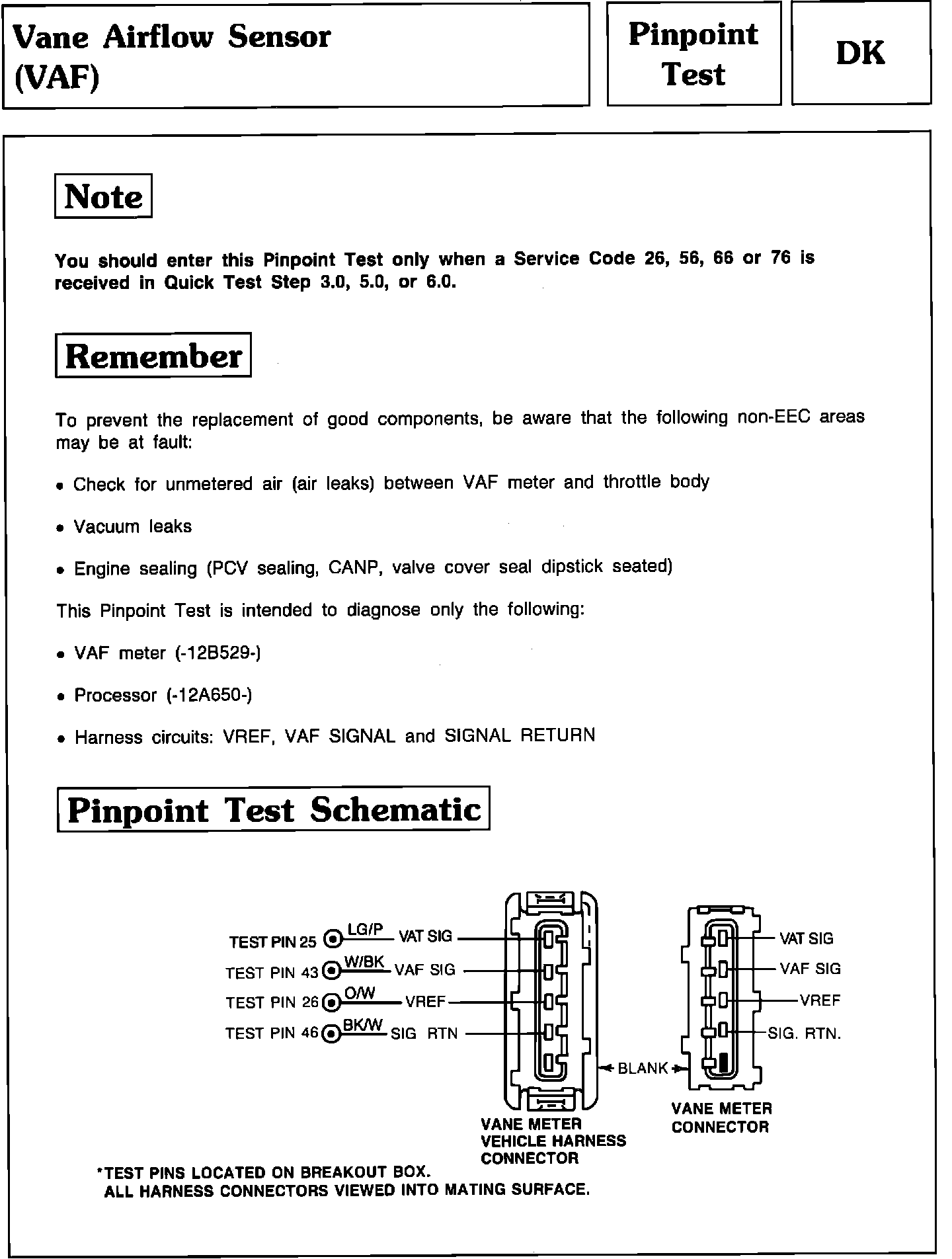 Pinpoint Test DK - Vane Airflow Sensor (VAF):