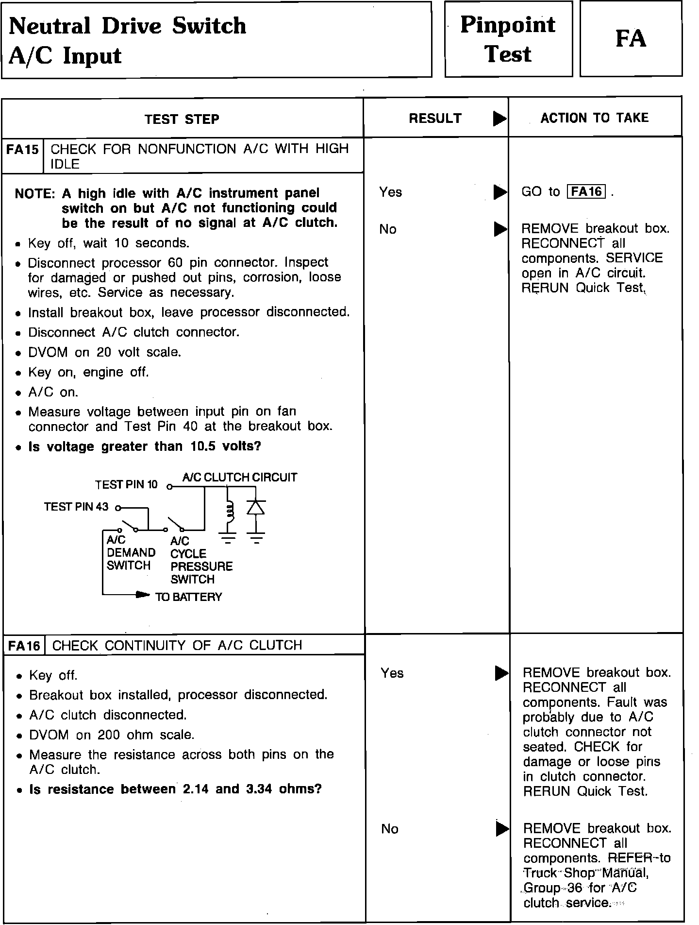 Pinpoint Test FA15 & FA16 - Neutral Drive Switch A/C Input: